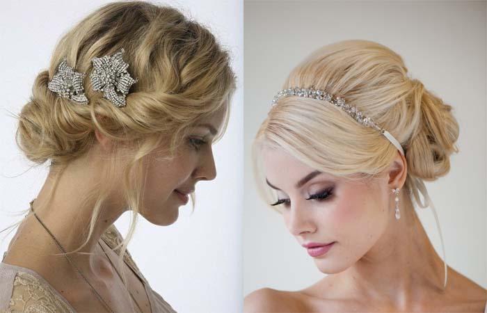 Удачным решением станет прическа греческого типа. Волосы скручивают в нижней части затылка. Полученный пучок рекомендуется ослабить. Из прически можно выпустить несколько прядей.