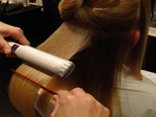 - Ультразвуковое наращивание. В России процедура стала доступной недавно, но она активно набирает обороты. При помощи специального салонного прибора — щипцов, испускающих волны определенной мощности, на волосках создаются микроскопические капсулы, к которым прикрепляются наращенные пряди. Определить отличие натуральных локонов от искусственных невозможно. Сегодня эта методика — наиболее безопасна для увеличения длины шевелюры.