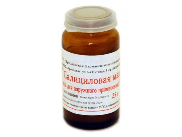 В основе — салициловая кислота, обладающая антисептическими и регенерирующими свойствами. Размягчает сухие корочки и снимает воспаления. Лечение длится от 6 до 20 суток. В зависимости от вида заболевания и общего состояния кожи, применяется, как в чистом виде, так и разбавленная с вазелином. Самое доступное средство, цена которого колеблется в пределах 25 рублей.