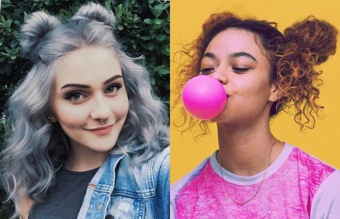 - Зачесать локоны к макушке, сформировать 2 хвоста, закрепить резинкой.