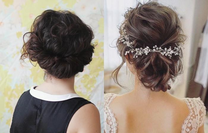 - Оставшийся свободный конец зафиксировать невидимкой. Слегка распушить локоны, украсить аксессуарами.