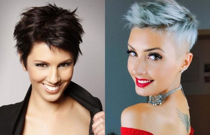 Яркая стрижка «Пикси» — отличный вариант для стройных хрупких барышень. Рекомендуется девушкам с вытянутой, треугольной и правильной формой овала. Возможные экстравагантные модели с выбритым виском, затылком. С удлиненной челкой выглядит женственно, элегантно. Практичная прическа для жестких локонов, лоскутная техника позволит придать желаемую форму, скрыть небольшие внешние недостатки — торчащие уши, высокий лоб, асимметрию черт. Хаотичная мужская укладка выглядит стильно современно, придает легкость, динамику жестким прядям.