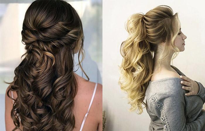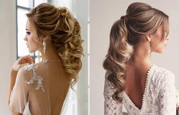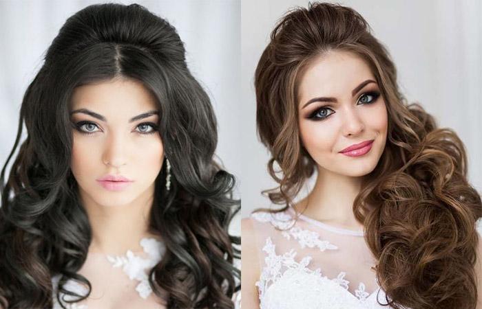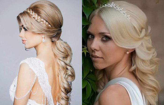 Не менее привлекательно выглядят распущенные кудри. Макушку обычно собирают, приподнимают или оформляют плетением. Нижние пряди оставляют свободными, пускают развиваться по плечам. Бижутерией обильно оформляют зону темени, висков.