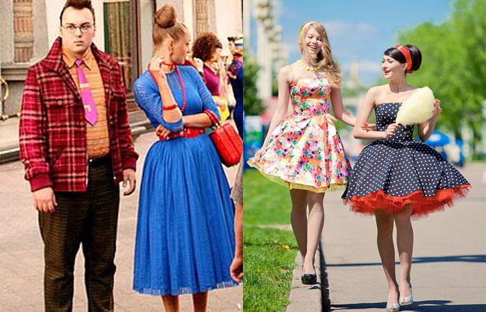 Переживания, горести утрат после Второй мировой войны поутихли, в моде 50-х годов наблюдается оттепель. Американские женщины и мужчины все больше добавляют яркости, красок в одежду, макияж, прическу. Это и цветочные принты на платьях, алая помада и смольные стрелки в макияже, очерченная корсетом, пояском осиная талия или элегантная, облегающая фигуру юбка-карандаш. Девушки спешат подчеркнуть свою сексуальность и индивидуальность, а мужчины стремятся придать образу игривости, даже легкой брутальности.