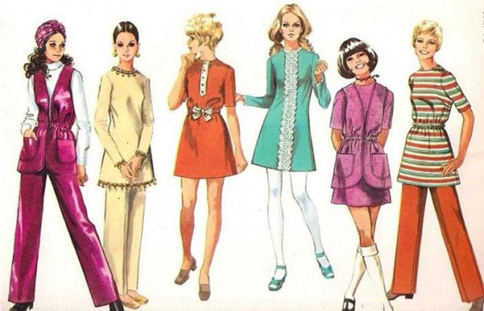 Максимум женственности, сексуальности ─ именно такие ассоцииации вызывает мода 60-х годов. «Любимицей» молодежи становится мини-юбка, женщины предпочитают элегантные платья А-образного кроя.