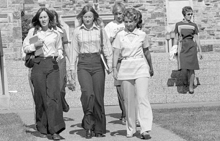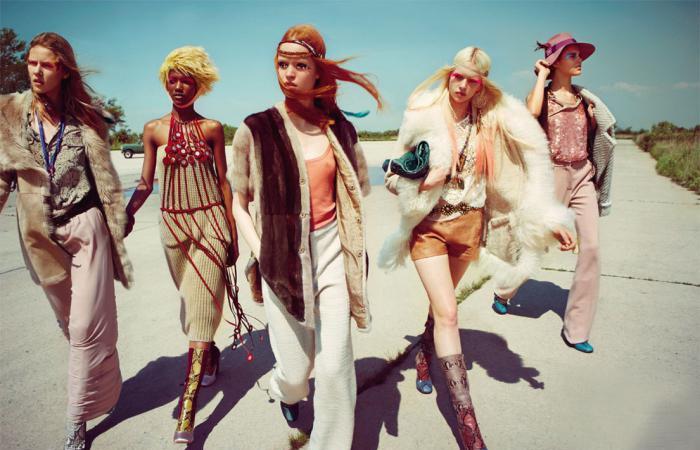 В противовес простым и естественным хиппи выступают яркие, оригинальные и зачастую комичные, сверхоткровенные образы. Ведущие дома моды приветствуют многокомпонентность в наряде, желание группировать вещи различных стилей. Мода 70-х многообразна, благодаря желанию каждого выразить свою индивидуальность, неповторимость. Часто такие порывы заканчиваются провалом.
