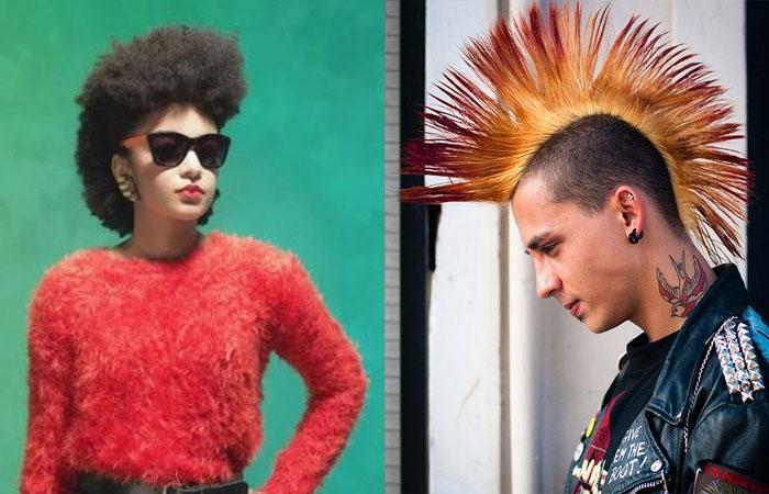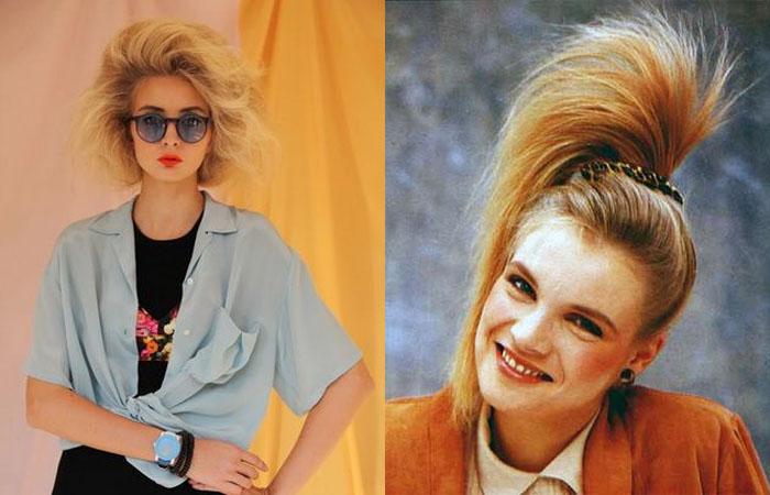 Мода «восьмидесятых» отличается креативом, смелостью и разнообразием. Теперь модники и модницы не боятся экспериментировать, выбирая оригинальные образы. Спокойствие «хиппи» сменяют неформальные панк и рок стили. Скромные прически остаются в прошлом, умопомрачительный начес, ирокез, высокий ежик, объемные укладки — вот что интересует массы. На пике популярности стрижка «маллет», «волчица», «аврора», а «каскад» теперь укладывают кончиками кверху.