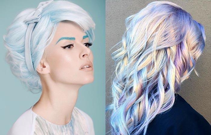 Необычно и эффектно выглядит градиент на волосах. Плавный переход от лавандовых или малиновых кончиков к кремовым, шампанским корням создает неповторимый, стильный образ. Можно смело использовать композицию клубничных, фиолетовых и голубых тонов на светлой шевелюре. Цветной коктейль — беспроигрышный вариант для юных, озорных личностей.