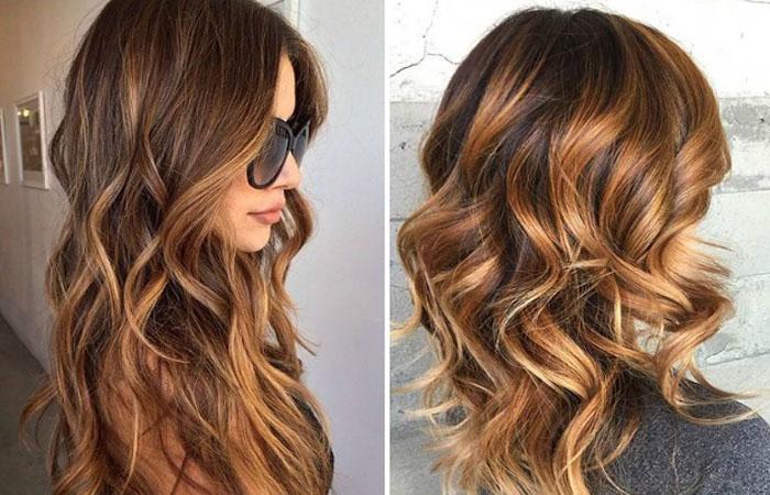 Шатенкам разнообразить образ, придать ему шарма и стиля помогут пшеничные, бежевые, золотистые, шоколадные прядки. Теплые оттенки подчеркнут женственность, утонченность красавицы.