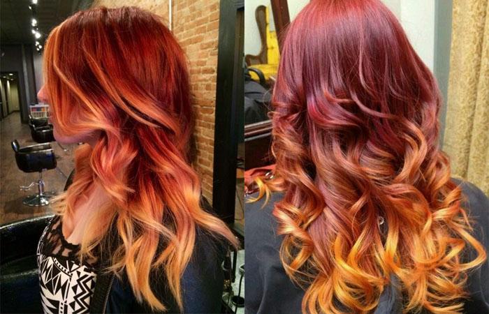 Балаяж на рыжие волосы смотрится не менее эффектно, чем на темных или светлых. Солнечные и золотистые переливы наполнят ваш образ романтикой и легкостью, придадут яркости и озорства.