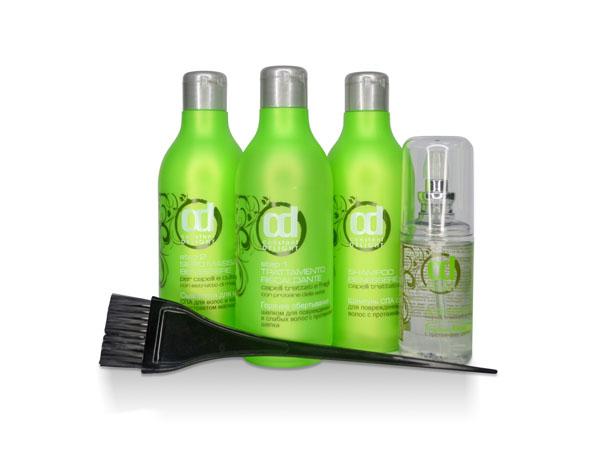 Серия включает шампунь глубокого очищения и укрепления, маску для увлажнения и восстановления, средство для ламинирования и лечебный препарат для усиления ослабленных прядей.