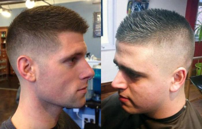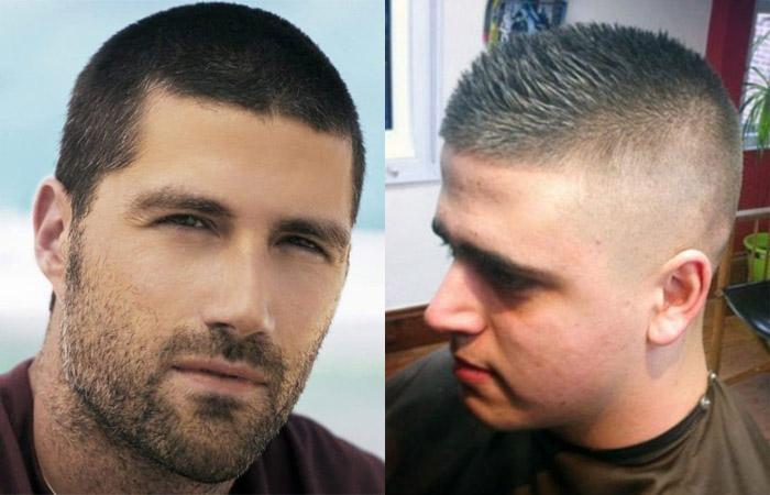 - армейский — для этого варианта характерна минимальная длина волос. Обновленный образ смотрится ультра мужественно, смело и сексуально. Окантовка выполняется максимально высоко, челку убирают;
