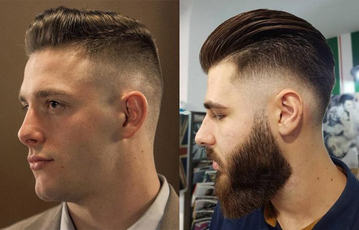 Модная стрижка предполагает создание удлиненной макушечной зоны (до 3 см) и очень короткий затылок, виски (до 3 мм). Линия окантовки (переход между разными длинами волос) достаточно резкая, располагается над линией затылка, максимально открывая затылочную область и виски.