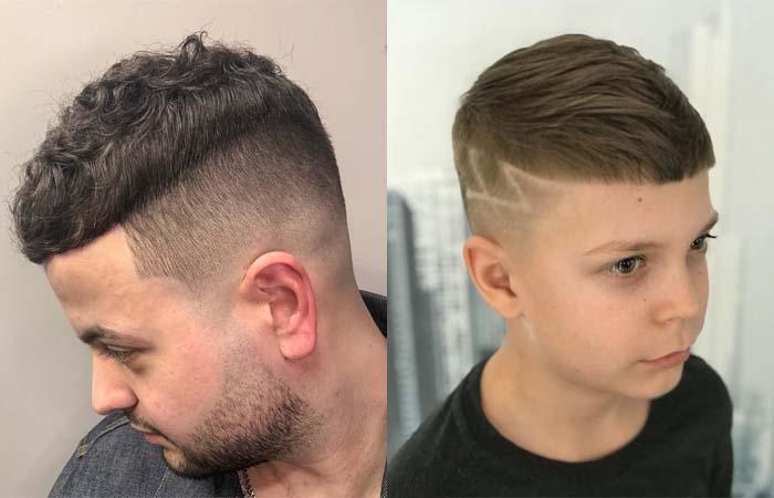 - Верхнюю часть затылка сбривают машинкой с насадкой пониженного уровня.