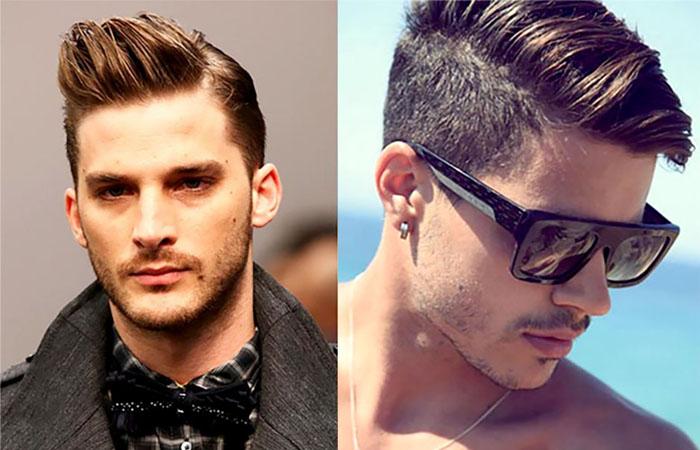 Увеличенная длина прядей в теменной области позволит создать прическу в стиле «Помпадур». Волосы поднимают вверх, зачесывают назад. В результате должен получиться объемный хохолок с однородной структурой. Обязательно используют лак для фиксации.
