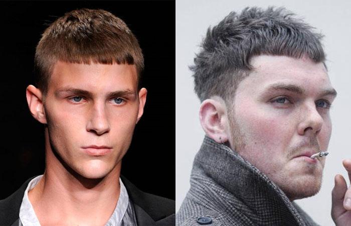 Как мы сказали выше, цезарь представляет собой короткую стрижку с челкой вперед. Ее главное отличие от других причесок в том, что для нее волосы на макушке, сзади и по бокам подстригают под одну длину. Эта особенность позволяет выглядеть аккуратно, даже если у вас непослушные волосы.