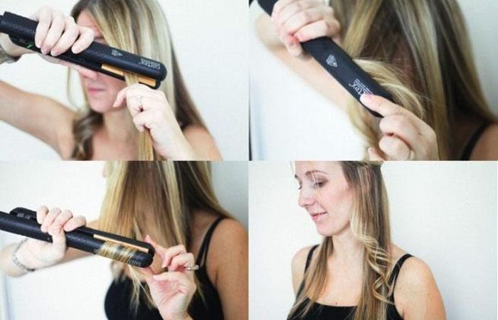 Такой метод завивки подходит для волос любой длины. После выполнения всех правил безопасности берем прядь утюжком на том уровне, с какой длины будут начинаться локоны, направляем его вниз, делаем поворот вокруг своей оси и проворачиваем до конца пряди. Проделываем то же самое с остальными волосами. Расчесываем локоны пальцами и слегка сбрызгиваем лаком.