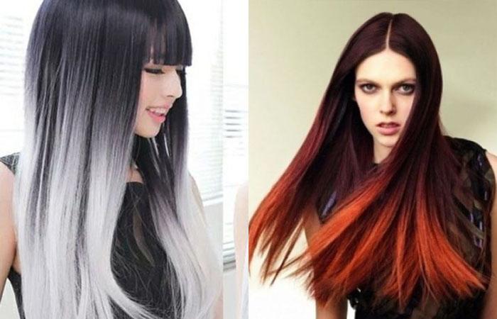 При таком способе окрашивания корни делают темными (блондинки и шатенки часто оставляют свой природный цвет), а кончики волос — светлыми. Главное условие — оттенки должны составлять гармоничный дуэт, поэтому обычно парикмахеры берут натуральные тона: ореховые, медовые, русые, кофейные, пшеничные.