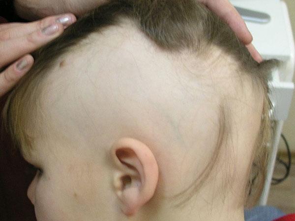 Но важно не пропустить врожденную алопецию, когда у малыша полностью отсутствуют волосы или наблюдается облысение определённых участков. Это связано с генетическим заболеванием при котором нарушается синтез аминокислот. Своевременная терапия, начатая в раннем возрасте, способна устранить этот неприятный процесс.