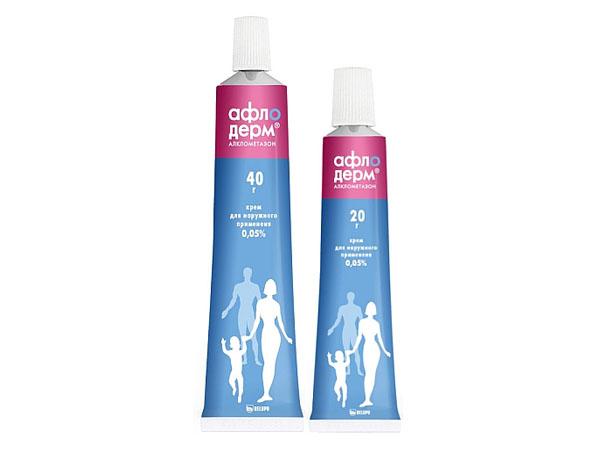 - Афлодерм. Относительно невысокая стоимость тубы в 40 г — 340 рублей. Принадлежит к кортикостероидным препаратам средней интенсивности воздействия. Разрешён с 6-месячного возраста, но только на небольших участках.