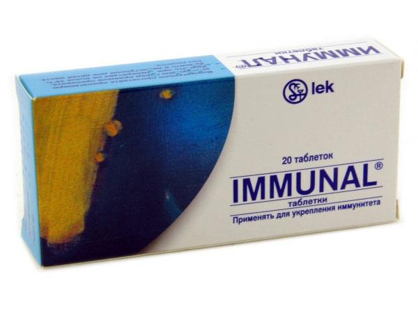 - Иммунал. Выпускается в виде таблеток, которые можно принимать с 4-х-летнего возраста, или раствора, используемого с 1 года. Назначается для укрепления иммунитета, профилактики вирусных заболеваний и как дополнительное средство, способное улучшить реакцию организма на употребление антибиотиков. Приобрести этот иммуномодулятор можно за 320 рублей.