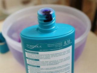 - Можете предварительно смазать кожу глицерином (вазелином) или любым другим кремом с жирной текстурой. Дело в том, что консистенция тоника довольно жидкая, поэтому в процессе проведения окрашивания можно непроизвольно покрасить лоб и уши.