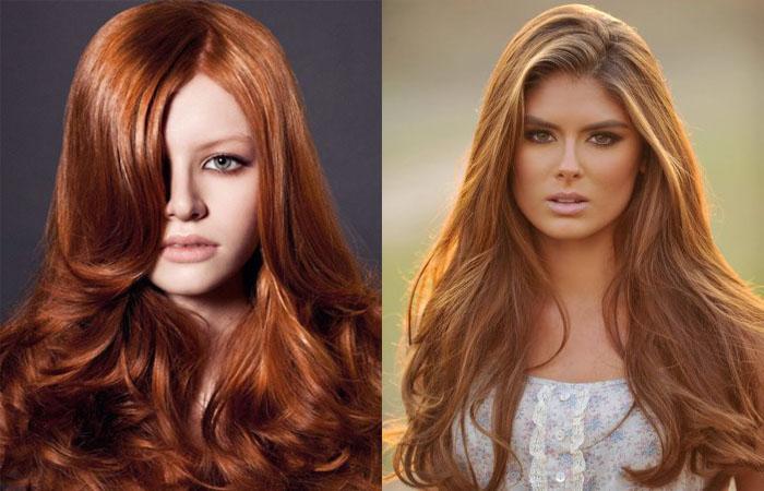 Рыжие варианты гаммы отлично впишутся в образ теплых осенних дам. Яркая краснота насытит внешность. Рыжина волос добавит образу гармонии. Для обладателей холодного оттенка кожи и карих глаз предпочтителен медный тон. Для любителей экспериментов, яркого стиля жизни рекомендуется попробовать смесь оттенков палитры с розовыми, фиолетовыми включениями.