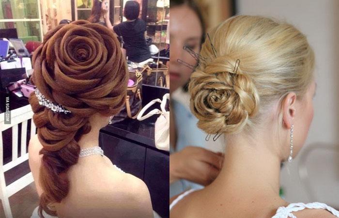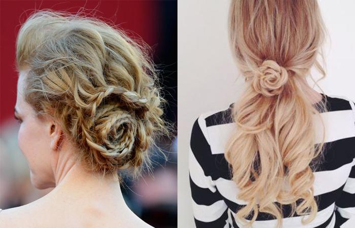 Розы из волос часто сооружают для торжественных случаев. Прическа помогает выделиться из толпы, подчеркнуть женственность, романтичность натуры. Приемом часто пользуются звезды. С композицией из цветов щеголяли Джулия Робертс, Николь Кидман, Джессика Альба и другие знаменитые дамы.