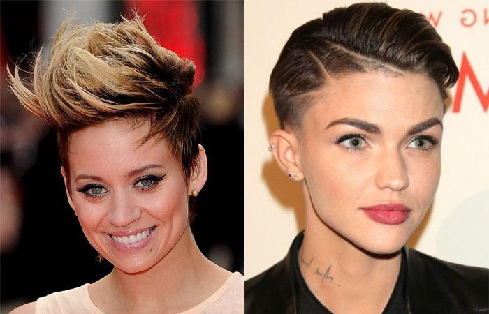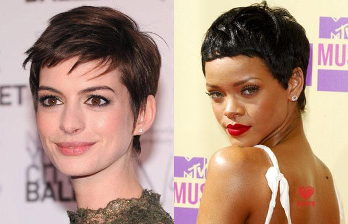 Яркой обладательницей прически унисекс в формате ежика называют Энн Хэттуэй. Актриса то убирает длину, то оставляет удлиненный вариант «под мальчика». Любительницами выбритых висков, ирокеза, кока выступают Рианна, Майли Сайрус, Пинк. Бритт Марен носит классический унисекс с длинной челкой, укороченными висками и затылком. Шарлиз Терон, Бейонсе предпочитают элегантные пикси с минимальной длиной.