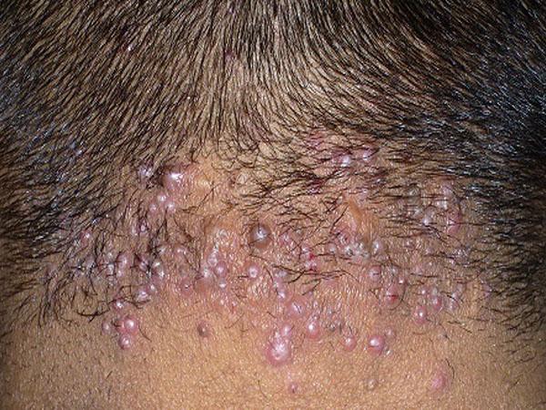 - появление даже небольших язв на затылке и висках (могут сливаться в единой целое).