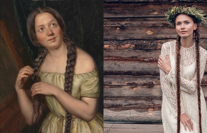 На Руси коса была предметом гордости, символом здоровья, красоты. Незамужние девушки заплетали одну центральную трехлучевую. После венчания женщины носили две косы, которые традиционно прятали под платок. Сакральное значение плетений ощущается и сегодня. Собранные волосы помогают приумножить жизненную энергию, сконцентрироваться на задуманном. Историю и технологию плетения русской косы, вы можете просмотреть у нас на сайте.