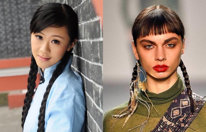 Косы с челкой мастера рекомендуют для коррекции внешности. Прямая подходит вытянутым, ромбовидным лицам, скрывает широкий лоб. Косая, рваная — преображает круглое, а также лицо с выраженными скулами. Удачны модели и для барышень после 30 лет, для создания женственных, стильных образов.
