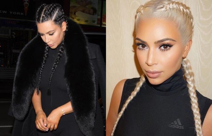 Эпатажная Ким Кардашьян выглядит нежно и романтично с двумя длинными плетениями.