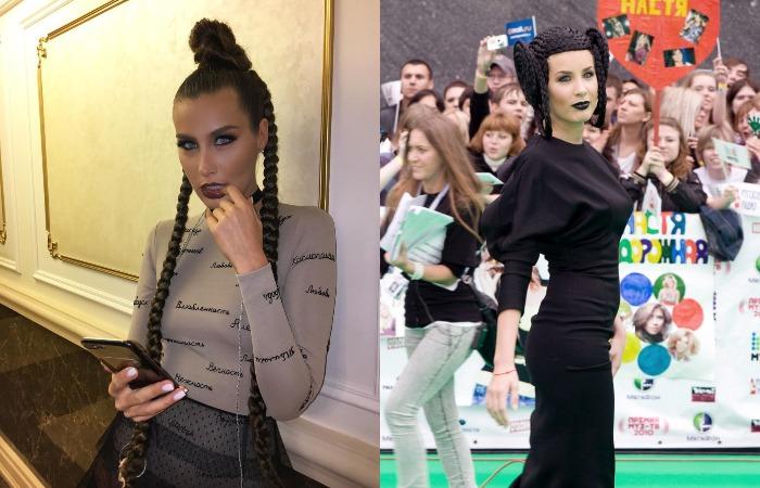 Кэти Топурия может позволить себе разные прически. Идет певице оригинальная укладка с двумя косами.