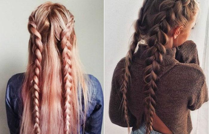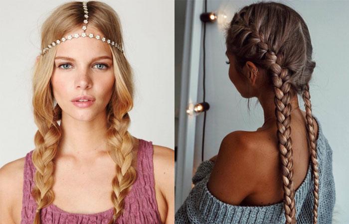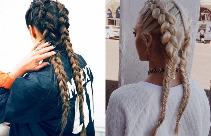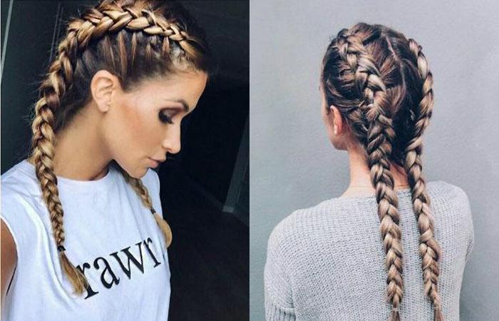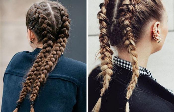 Две косички — любимая прическа активных барышень, регулярно занимающихся спортом, а также любительниц путешествий. Практичная модель оберегает локоны от спутывания, загрязнений. После изнурительной поездки можно не тратить время на мытье и укладку волос, а сразу же отправляться на гламурную вечеринку.