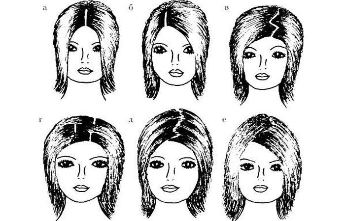 - расположение пробора, а также кос, гармонизирует лица, скрывает торчащие уши, диспропорцию;