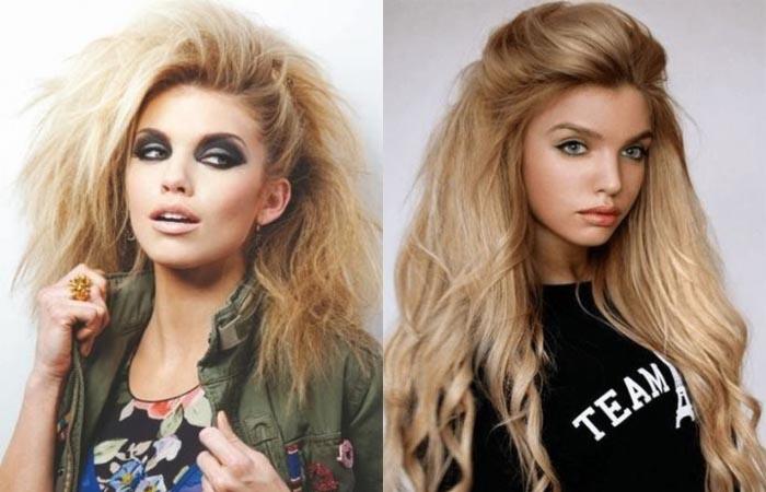 Укладки и стрижки восьмидесятых отличались экспрессией, нарочитой искусственностью. Современные тренды используют лишь отдельные детали — начес, завитые локоны, но в менее агрессивном варианте. Образ рокеров можно использовать сегодня, собираясь на тематическую вечеринку или концерт панк группы.