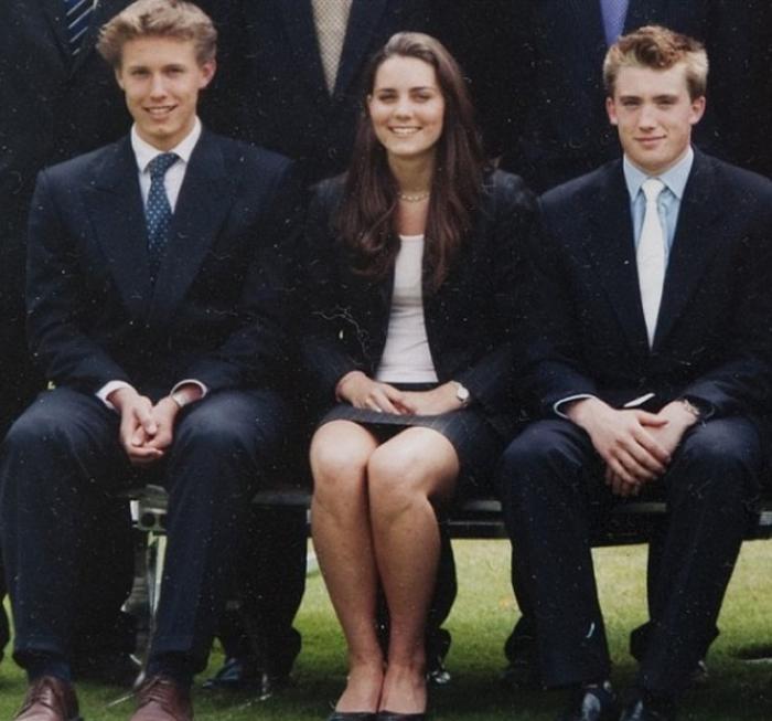 Уже в школьные годы будущая герцогиня носила свою фирменную удлиненную челку, которую для удобства зачесывала на 2 стороны.