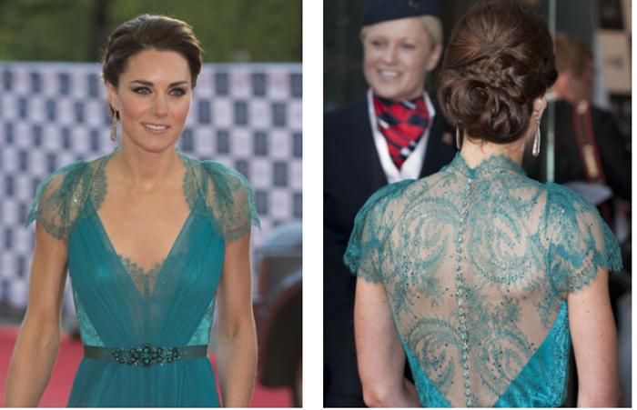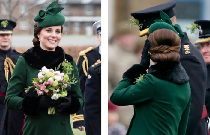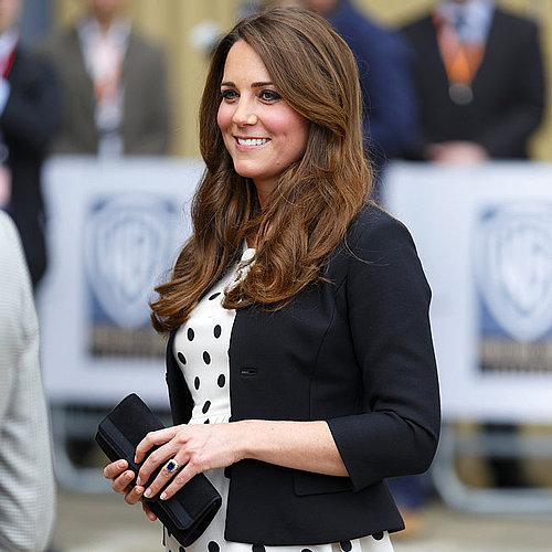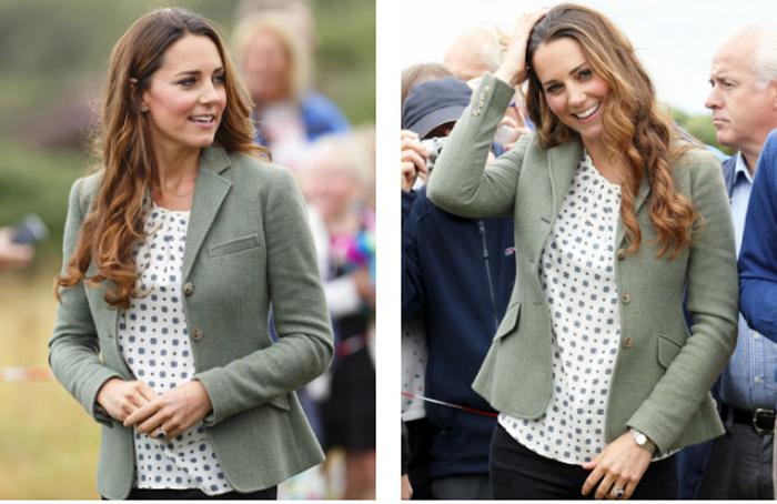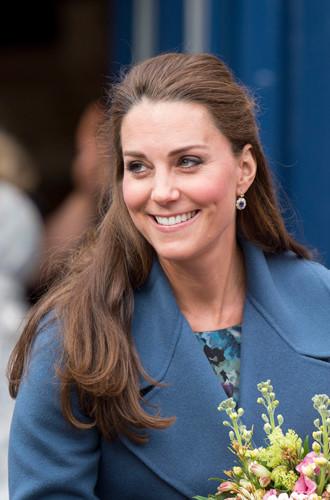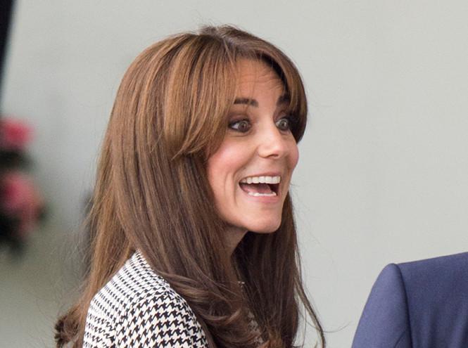 В этом образе нет ничего от королевской помпезности. Высокий хвост с небольшим объемом на макушке и аккуратно уложенная длинная челка смотрятся скромно, непринужденно. Кейт умеет носить незамысловатые прически так, чтобы выглядеть роскошно.