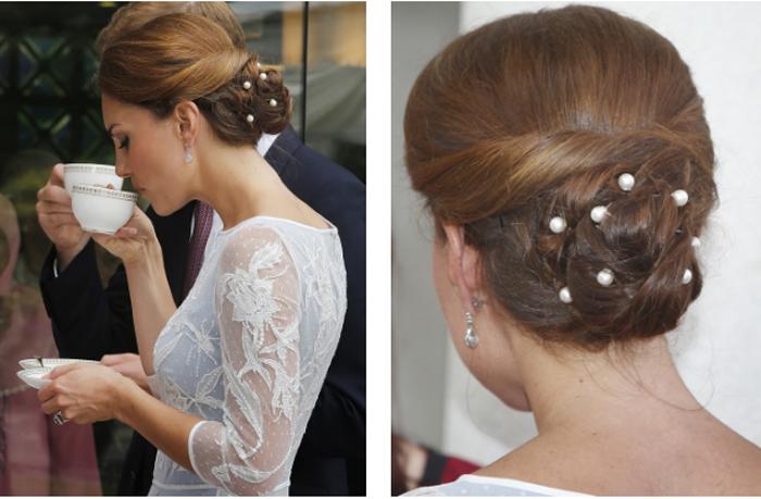 Элегантную прическу Кейт дополняет утонченными украшениями, но делает это редко.