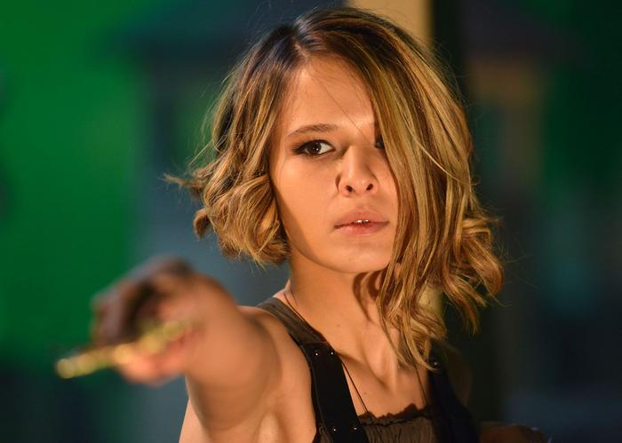 Фильм «Ночные стражи», в котором молодая звезда играет главную роль, тоже вышел на экраны в 2016-м. Асимметричную стрижку Любови укладывают крупными кудрями.