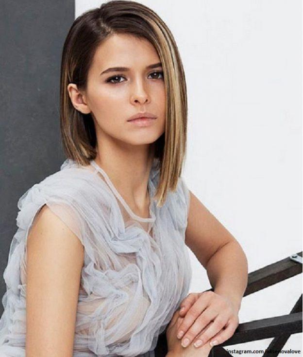 Минимальная длина натуральных волос, с которой до сих пор можно было увидеть Аксенову, — асимметричное каре. В 2016 году она сделала стильную стрижку и осветлила пряди, чтобы сыграть избалованную папину дочку с кучей проблем в сериале «Бывшие».