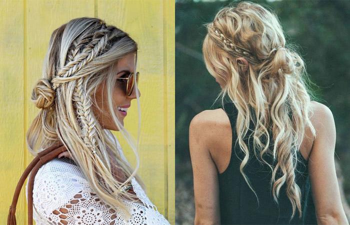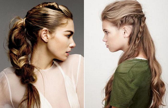- Плетение. Стилисты рекомендуют поэкспериментировать с косами. Свободное плетение в необычном стиле — лучшее решение. Косички допустимо сочетать с распущенными прядями, другими элементами. Для дискотеки допустима даже «Корзинка».