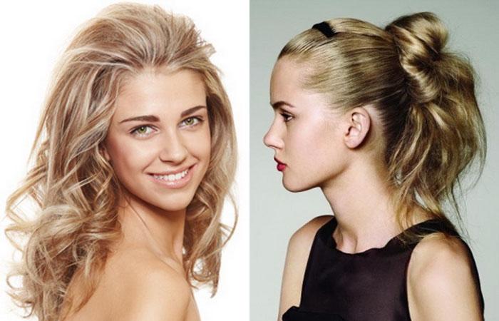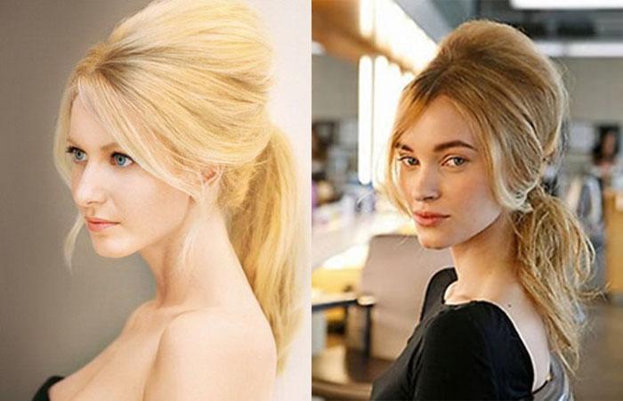 - «Бабетту» на современный лад. Не надо переусердствовать с объемом. Достаточно небольшого начеса. Свободные волосы убирают в пучок, хвост или пышную косу. Начесать можно все волосы в интервале от темени до макушки или оформить только челку.