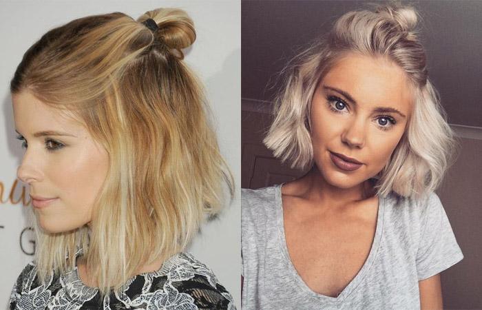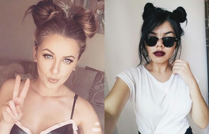 - Имитацию «Топ кнот». Совсем не обязательно брить виски. На макушке просто завязывают пучок в виде петли. Нижние волосы оставляют распущенными. Особенно колоритно выглядит реальный «Топ кнот» с укороченным нижним ярусом.