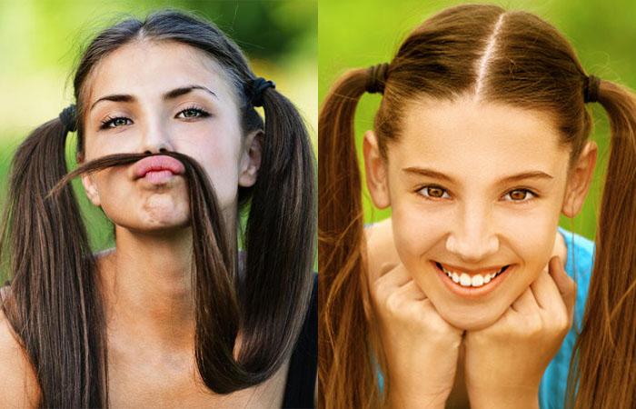 Выбирайте подходящий стиль для вашего типа лица. Два хвоста могут выглядеть по-разному в зависимости от формы лица. Например, для овального лица подойдут высокие хвосты, а для круглого — низкие и слегка распущенные.