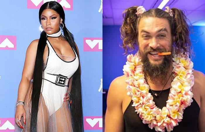 Звезда «Игры престолов», Джейсон Момоа, несмотря на брутальную внешность, появился на публике с двумя озорными хвостиками. Образ актеру создали его дочери, не забыв украсить розовыми резинками.
