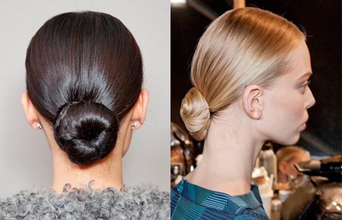 Чаще всего пучок располагают на затылке. Этот вариант универсален, позволяет удачно сочетать прическу с форменным головным убором. Укладку реально сделать для волос с длиной от средней.