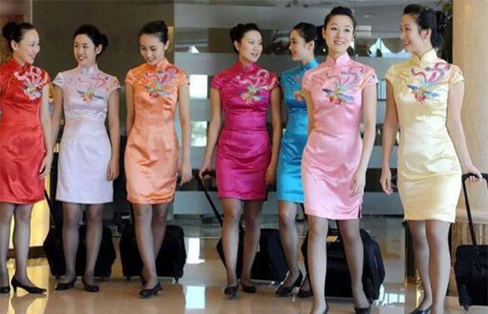 У обслуживающего персонала самолетов Sichuan Airlines (Китай), Thai Airlines (Таиланд) предусмотрены красочные наряды в традиционном стиле. Присутствие головного убора не предполагается, что не дает девушкам свободу выбора укладок. В качестве причесок используют пучки в традиционной манере. Изредка встречаются девушки с каре.