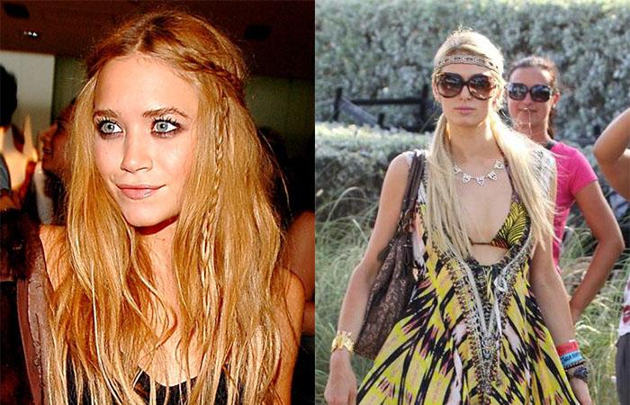 Укладки по образцу субкультуры 70-х часто различимы на головах знаменитостей. Вариант периодически демонстрируют в повседневной жизни и на публичных мероприятиях. С прической в стиле хиппи часто появляются Эшли Уолсен, Николь Риччи, Перис Хилтон, Дрю Берримор, Сара Джессика Паркер.